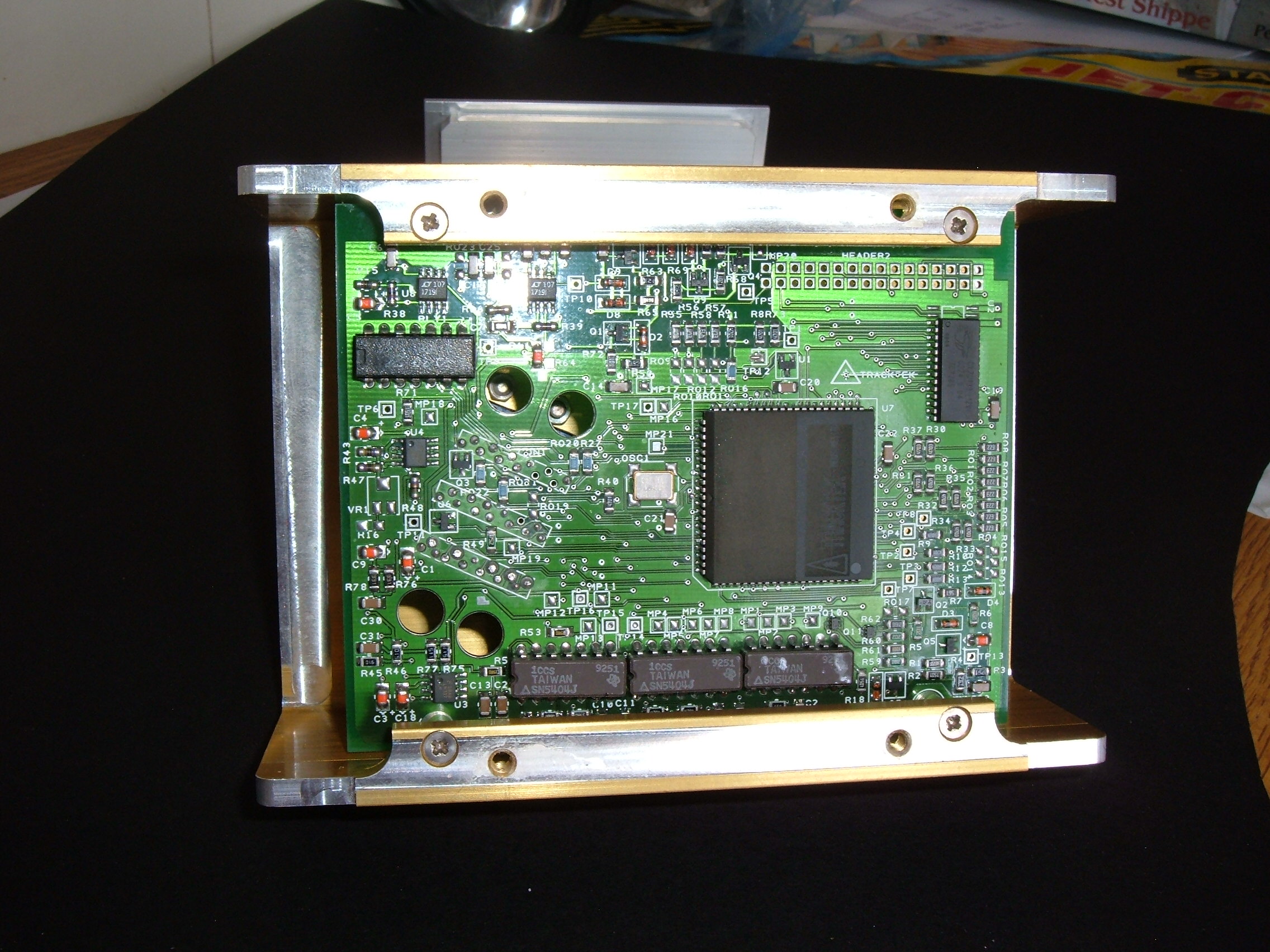 You can click on the images above to enlarge them. Two show the old unit sitting along side its functional replacement. The third shows the contents of the new enclosure, and also demonstrates that despite the huge reduction in volume the box is still largely empty, needing only the single circuit card shown there. The excess volume in the new case is a consequence of having to make the shape and size of the enclosure compatible with the existing mechanical attachment points and ensuring the interface cable to the rest of the system would reach the Hypertac connector on top of the new enclosure without any sharp bends.